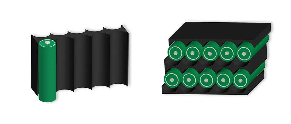 專為18650,21700電池定制的形狀,恰到好處的凹槽能夠增加相變材料與電池的接觸面,得益于相變材料極好的吸熱性,使得各個(gè)電池的溫度更均勻,可工作時(shí)間更長(zhǎng)。